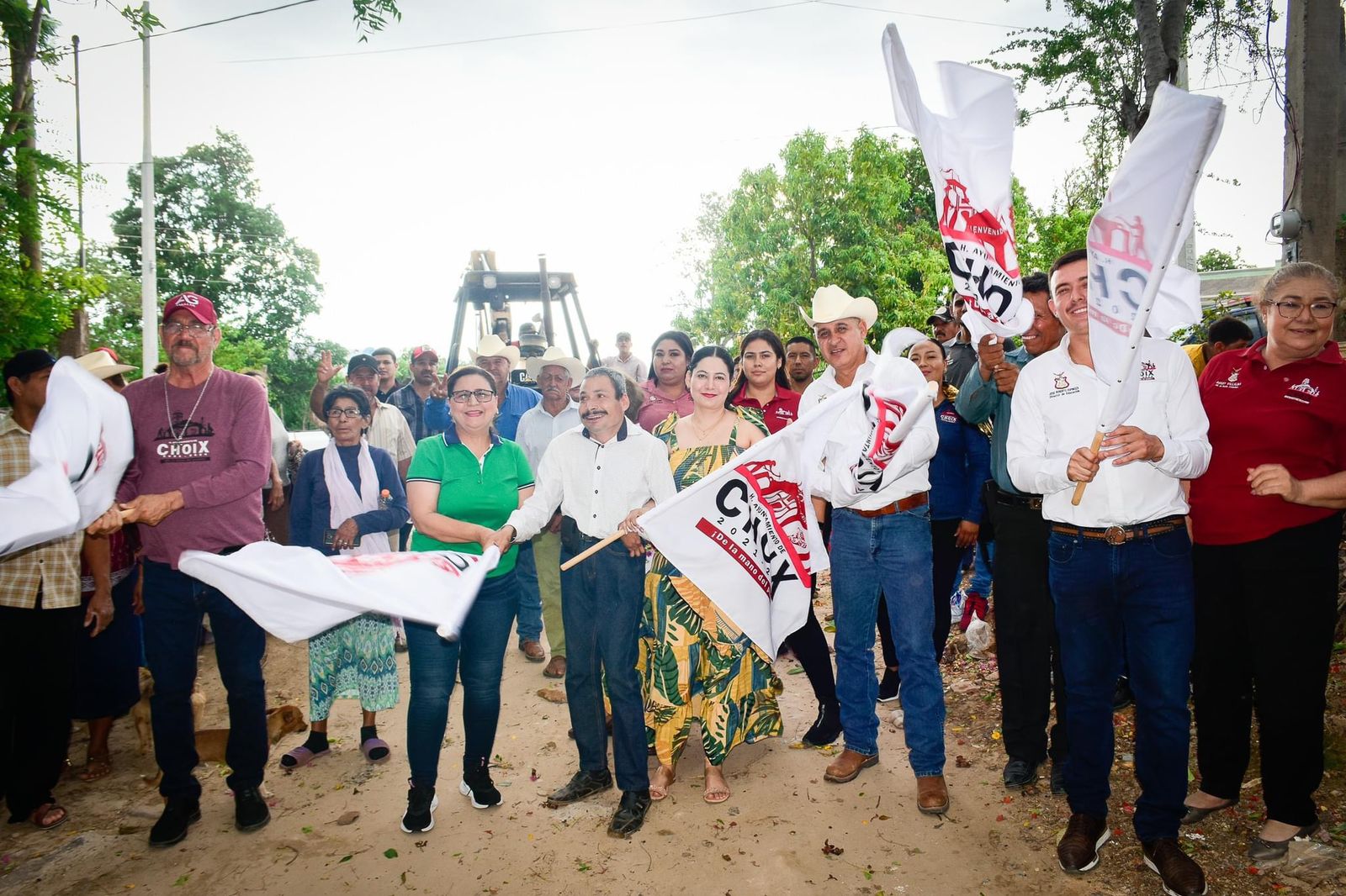 “Aquí estamos cumpliendo uno, pero fíjense bien, uno de todos los compromisos que nos echamos en campaña, porque bien recuerdo que el hermano José me gritó y me dijo «a ver si ustedes sí pavimentan esa calle que todos los que han pasado por la presidencia nos han prometido y ninguno ha cumplido» y bien recuerdo que le dije «yo soy mujer pero si le voy a cumplir» y por eso es la primera calle que vamos a pavimentar en este año, hay otras prioridades, pero le quisimos dar oportunidad a esta calle porque es una de las que más se transitan por aquí y en las condiciones en que está no está nada bien; entonces decirles nada más que, estamos trabajando y que ahí estamos a la orden”, mencionó Amalia Gastélum Barraza Alcaldesa de Choix.