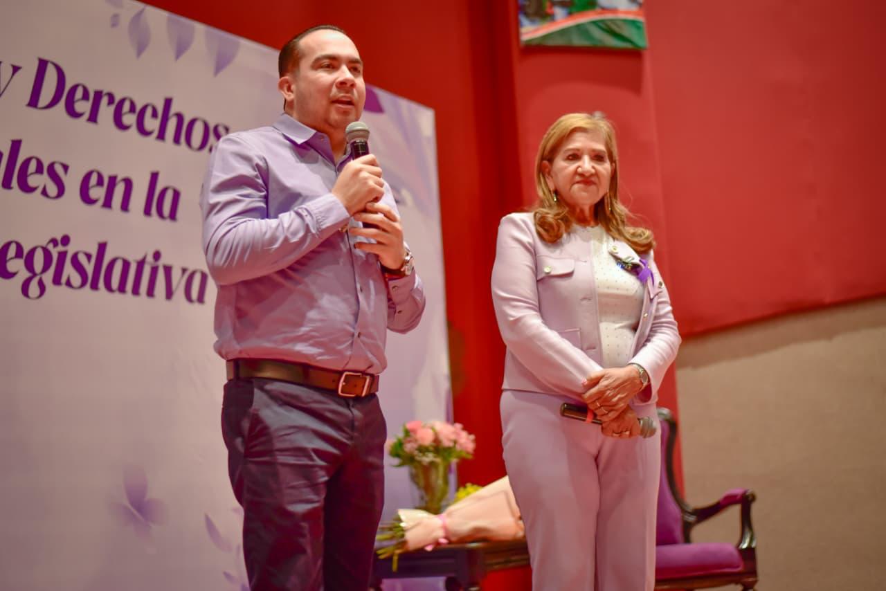 Los Mochis, Ahome, Sinaloa.- En el marco de la conmemoración del Día Internacional de las Mujeres, el Presidente Municipal de Ahome, Antonio Menéndez de Llano Bermúdez, refrendó el compromiso de su gobierno con la igualdad real y sustantiva, durante la conferencia “Mujeres y derechos laborales en la agenda legislativa”, impartida por la diputada Tere Guerra Ochoa, presidenta de la Junta de Coordinación Política del Congreso del Estado de Sinaloa.