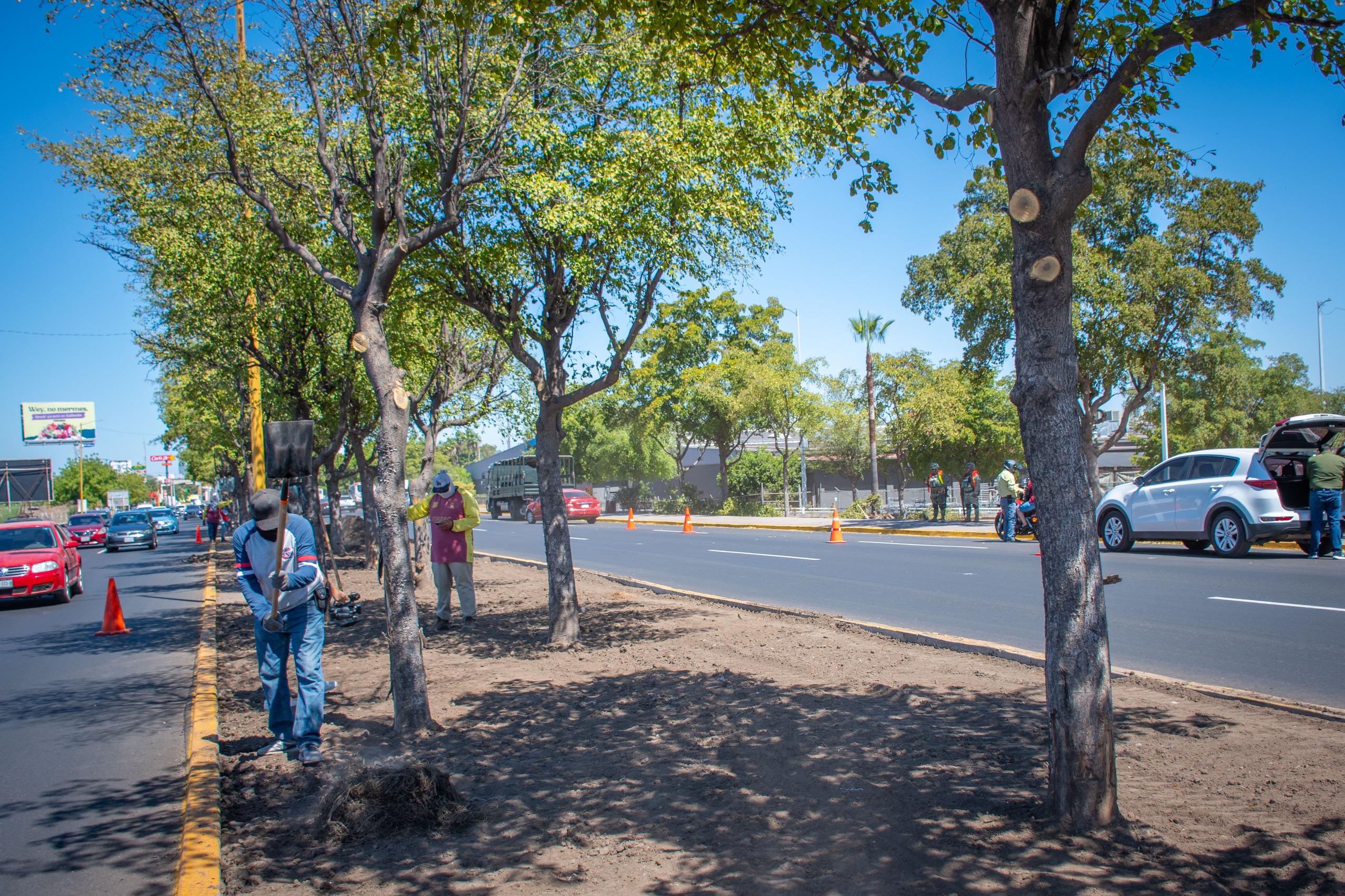 Culiacán, Sinaloa.- El Ayuntamiento de Culiacán, a través del área de Parques y Jardines, lleva a cabo trabajos de rehabilitación en el camellón central del bulevar José Limón, en el tramo comprendido desde la glorieta Cuauhtémoc, conocida como “La Canasta”, hasta el bulevar República de Brasil.