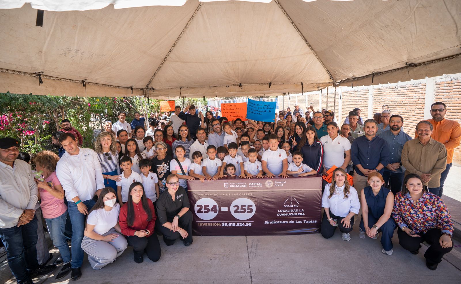 En este marco, el alcalde Juan de Dios Gámez encabezó la entrega de dos nuevas calles en la comunidad de La Guamuchilera, sindicatura de Las Tapias, (las calles 254 y 255) donde se destinaron 9 millones de pesos para la pavimentación en concreto hidráulico, beneficiando directamente a las familias de la zona.