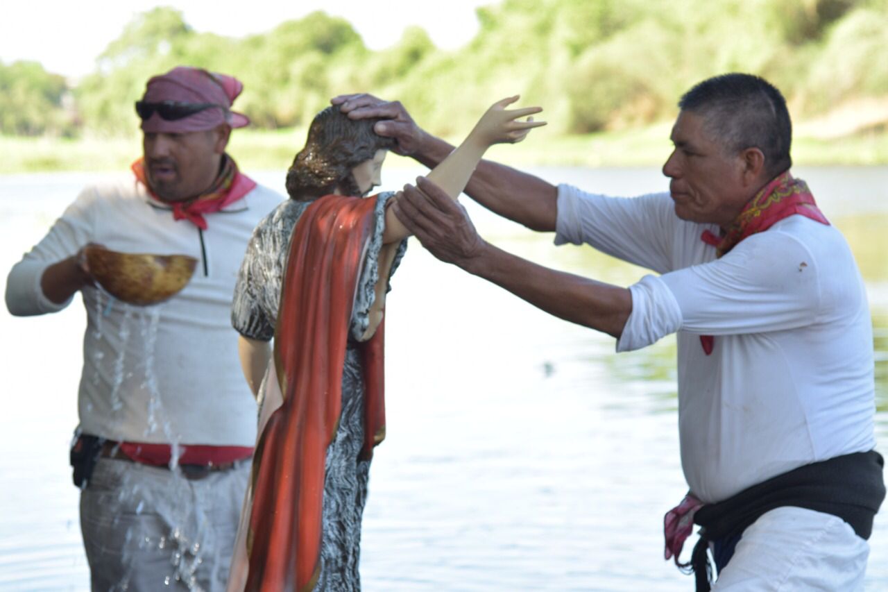 Por último, se procedió a realizar el ritual del recorrido con el santo, para llevarlo al tradicional baño en el rio, en donde el alcalde Gildardo Leyva ortega encabezo dicha ceremonia.