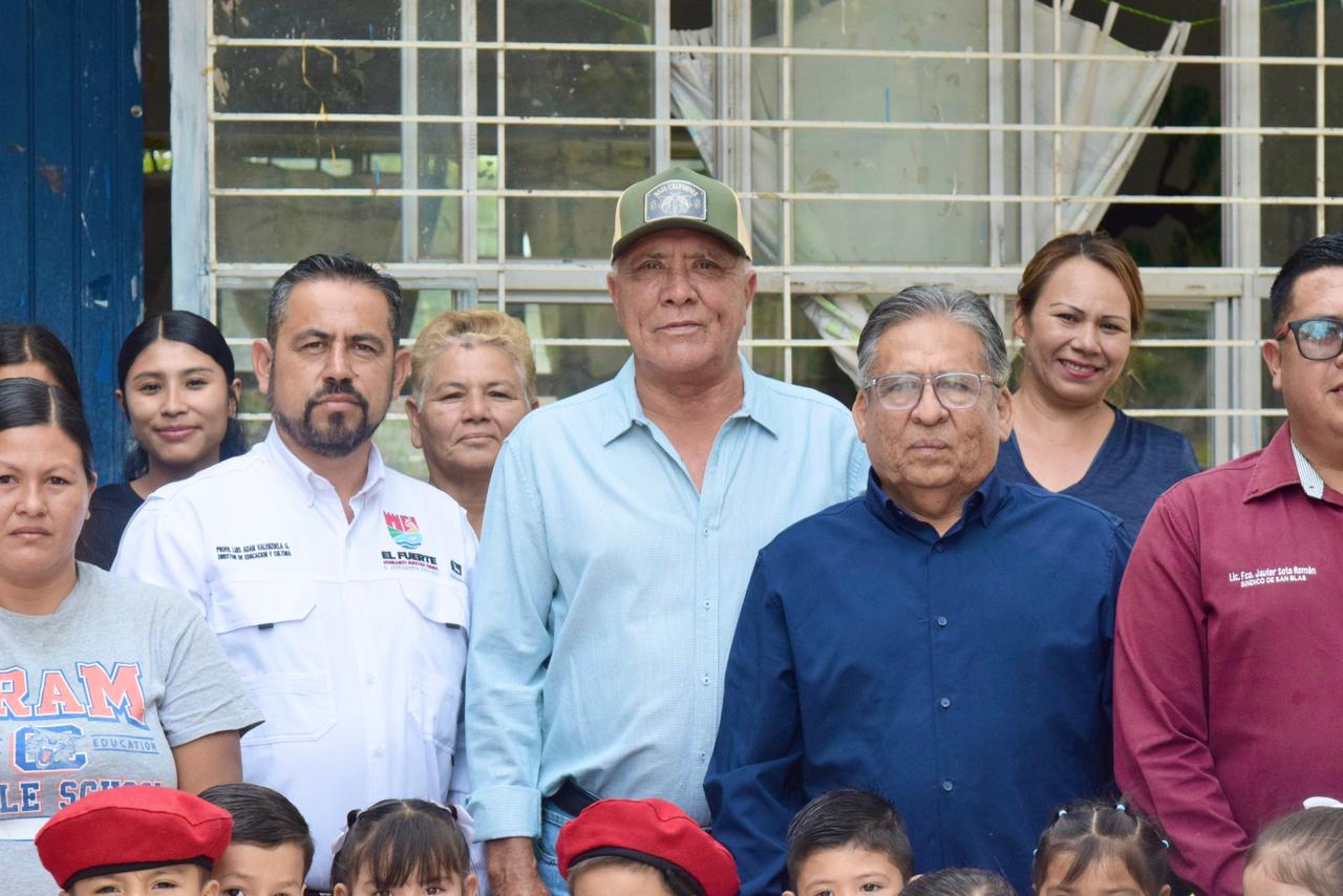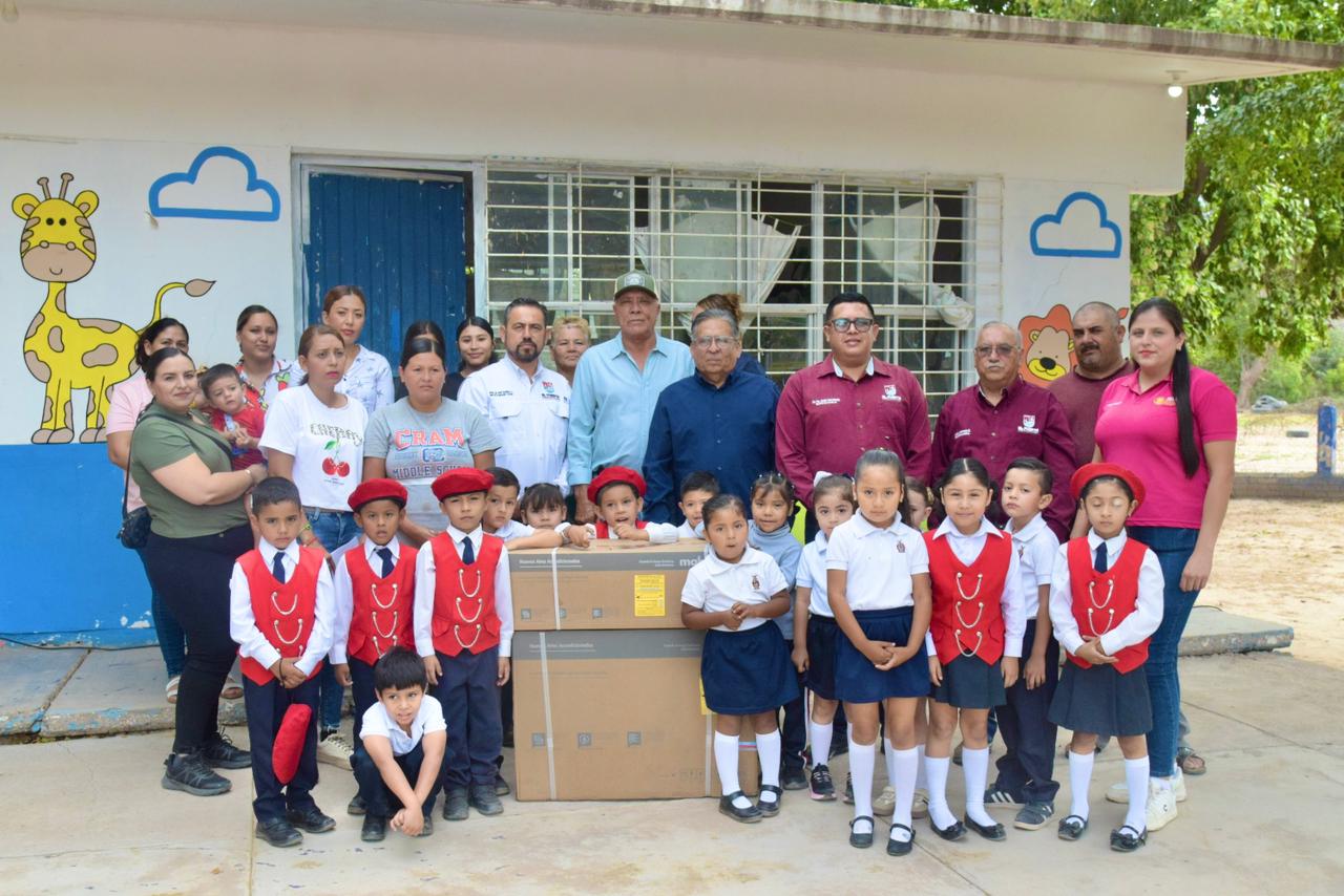 El Fuerte, Sinaloa.- Con el firme compromiso de impulsar mejores condiciones para la educación en el municipio, el alcalde Gildardo Leyva Ortega realizó una visita al Jardín de Niños “Miguel de Cervantes Saavedra”, que se ubica en la comunidad de Macoyahui, donde hizo entrega de un equipo de aire acondicionado en beneficio de la comunidad escolar.