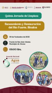 La Comisión Nacional del Agua (CONAGUA), en coordinación con el H. Ayuntamiento de El Fuerte, invita a la ciudadanía a participar en la Quinta Jornada de Limpieza del Río Fuerte, una actividad que busca fortalecer la conciencia ambiental y fomentar la participación comunitaria en la protección de uno de los recursos naturales más valiosos de la región.