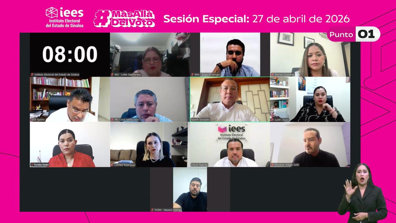 Durante sesión especial virtual, el Consejo General del IEES resolvió los expedientes derivados de los procedimientos sancionadores ordinarios iniciados en noviembre de 2025, en los que se señalaban presuntos actos de promoción personalizada, uso indebido de recursos públicos y actos anticipados de precampaña y campaña.