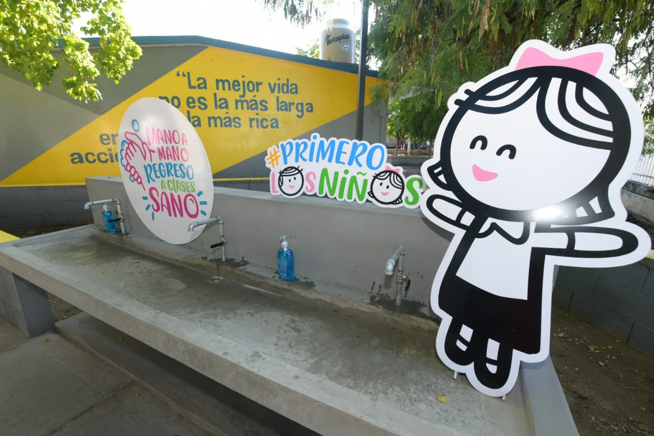 Culiacán, Sinaloa,. – “Hoy es un día de fiesta”, expresó el secretario de Educación, Juan Alfonso Mejía López, al entregar 31 lavamanos en beneficio de 53 planteles educativos de zonas marginadas, además de cinco bebederos, con una inversión global de 1 millón 084 mil 568 pesos en beneficio de más de 16 mil alumnos. Se trata de donativos por parte de Fundación Coppel, a través de PROEDUCA Sinaloa IAP por medio de la estretegia «Mano a mano, regreso a clases sano».