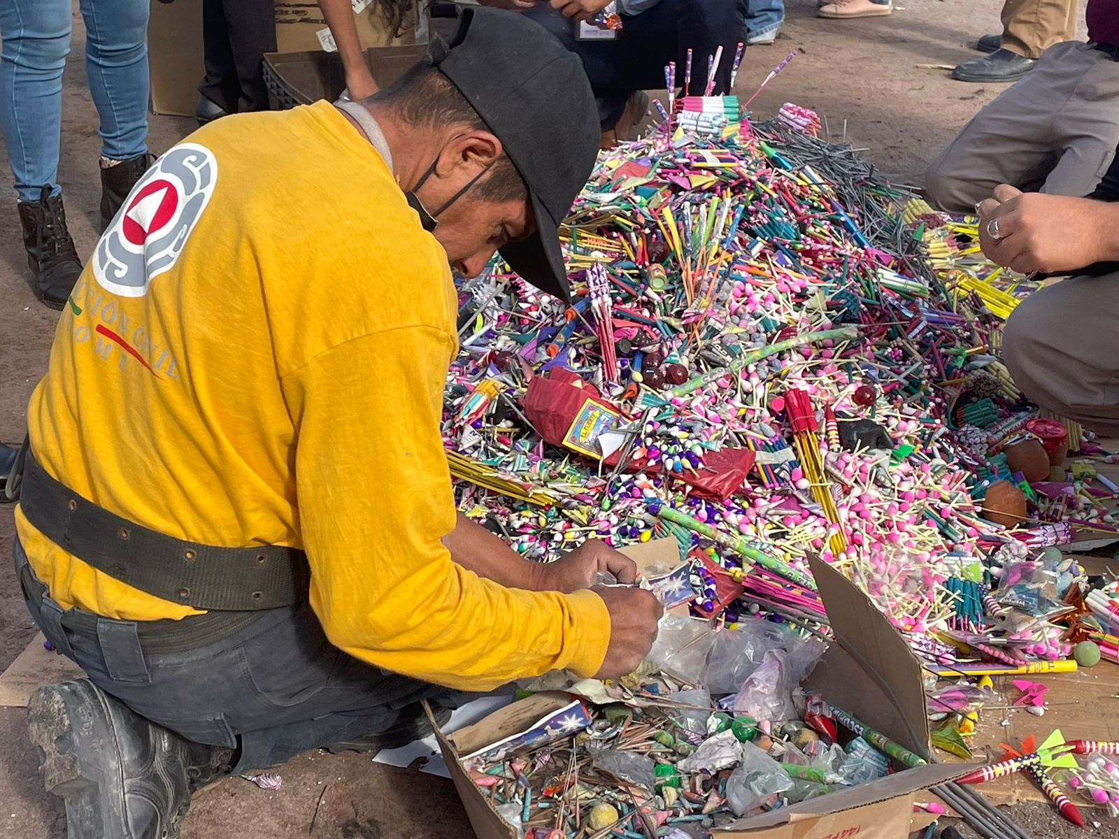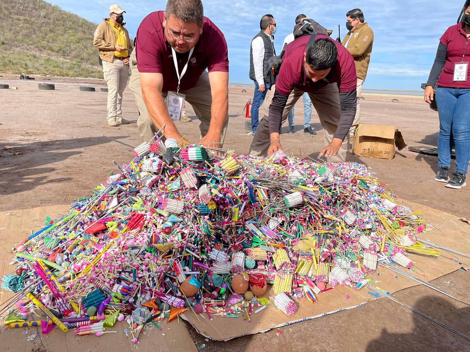 Los Mochis, Sinaloa.- La coordinación de Protección Civil en Ahome en coordinación con el ejército mexicano incineró alrededor de 160 kilogramos de pirotecnia decomisada en tiendas y comercios de Ahome.