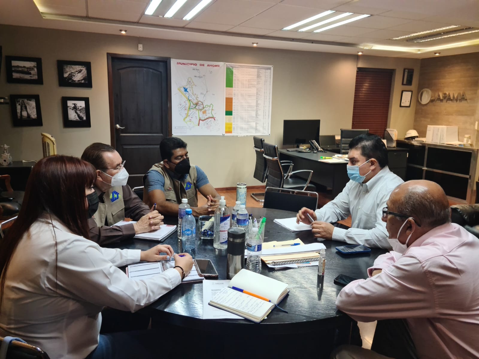 El Gerente General de la Paramunicipal, Raúl Pérez Miranda, se reunió con los titulares de estas dependencias para establecer acuerdos que garanticen la preparación del personal responsable de las plantas potabilizadoras sobre riesgos sanitarios
