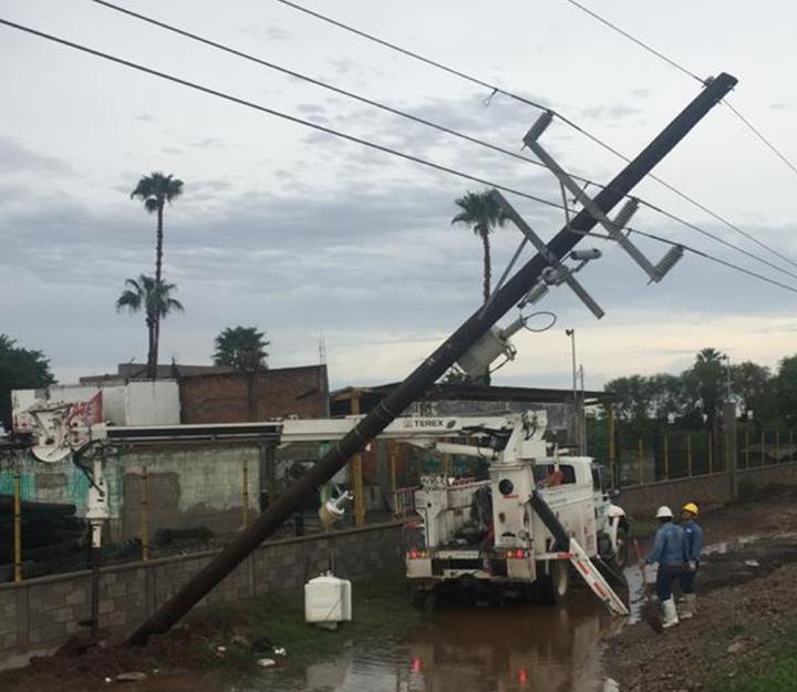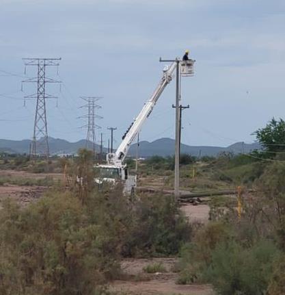 Trabajadores de la CFE iniciaron de inmediato las labores de restablecimiento, laborando sin interrupción hasta reanudar el servicio de energía eléctrica en la ciudad de Los Mochis y comunidades de Ahome.