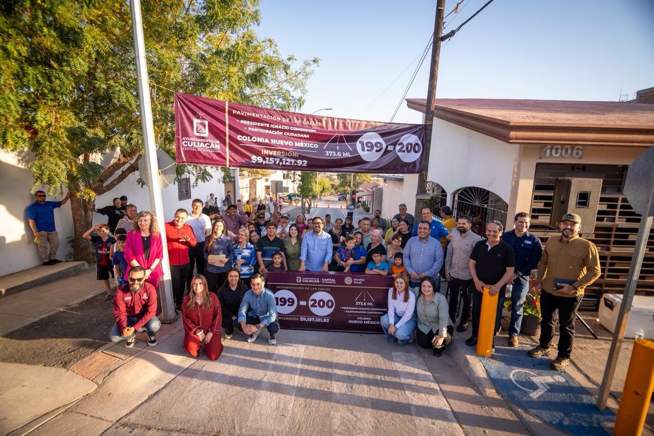 Culiacán, Sinaloa.– Vecinos de la colonia Nuevo México cuentan ya con nuevas vialidades tras la entrega de la pavimentación de las calles 199 y 200, ubicadas en los tramos Presidente Ignacio Comonfort y Participación Ciudadana, rompiendo un ayuno de 50 años sin nuevas obras viales en el sector.
