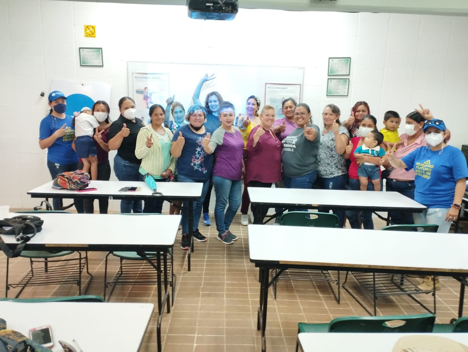 Como parte de una serie de capacitaciones, las mujeres de La Reforma tuvieron la oportunidad de participar en una charla con Yanett Castro, líder de la cooperativa Almejeras de Santa Cruz, donde reforzaron lazos y conocieron su experiencia comunitaria de éxito en Altata, Dautillos y Las Aguamitas.