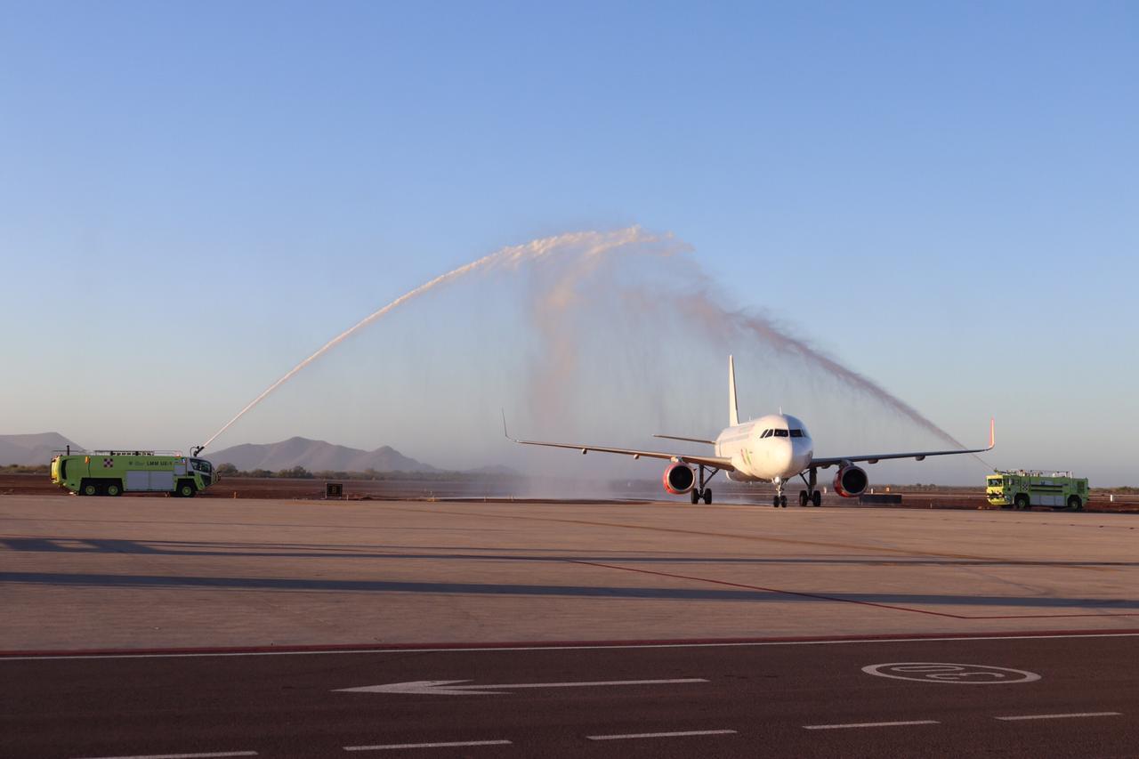Los Mochis, Sin.- Con la llegada hoy a las 7:45 horas del vuelo Los Mochis- Ciudad de México, la aerolínea Viva Aerobus inició esta nueva ruta, la cual ofrecerá dos vuelos a la semana, con frecuencia los días lunes y jueves.