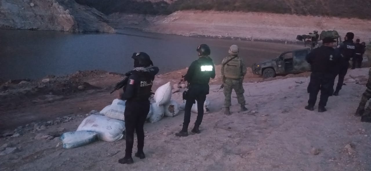 Se informó que los activos de la Secretaría de la Defensa Nacional (Sedena), y de la Policía Estatal Preventiva (PEP), realizaban recorridos en la zona rural de dicho municipio cuando observaron algunos bultos a un costado de un camino de terracería por lo que se inició una inspección.